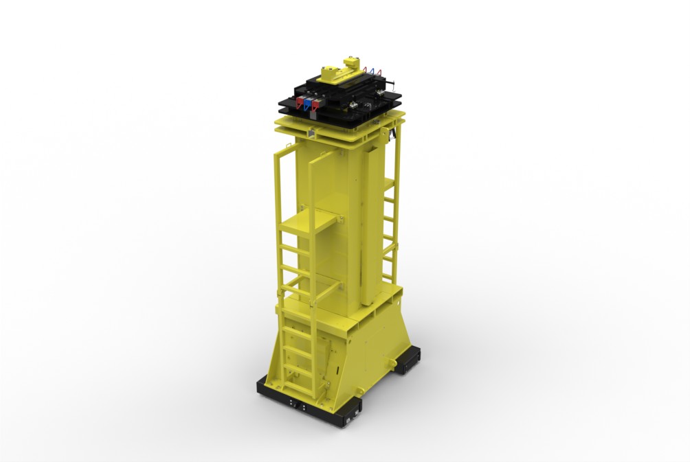 • Stabile Stahlkonstruktion bestehend aus Bodeneinheit mit Querverstrebungen, Radsätzen und einer geschlossenen Kastenbauweise zur Abstützung der Zylinder
